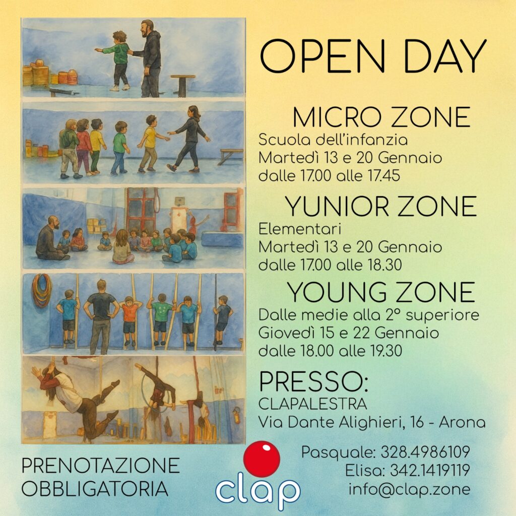 Partecipare agli open day significa iniziare l’anno con il movimento, la curiosità e la possibilità di continuare un percorso educativo attraverso il circo.