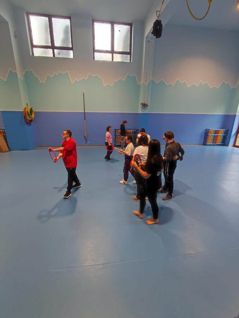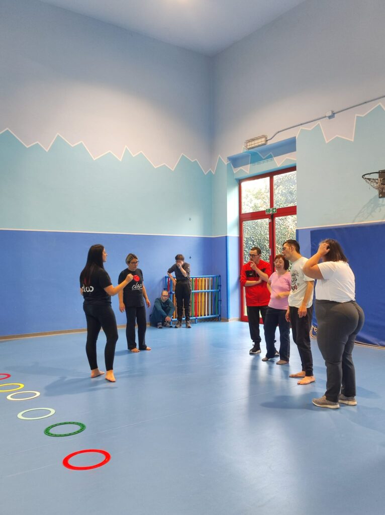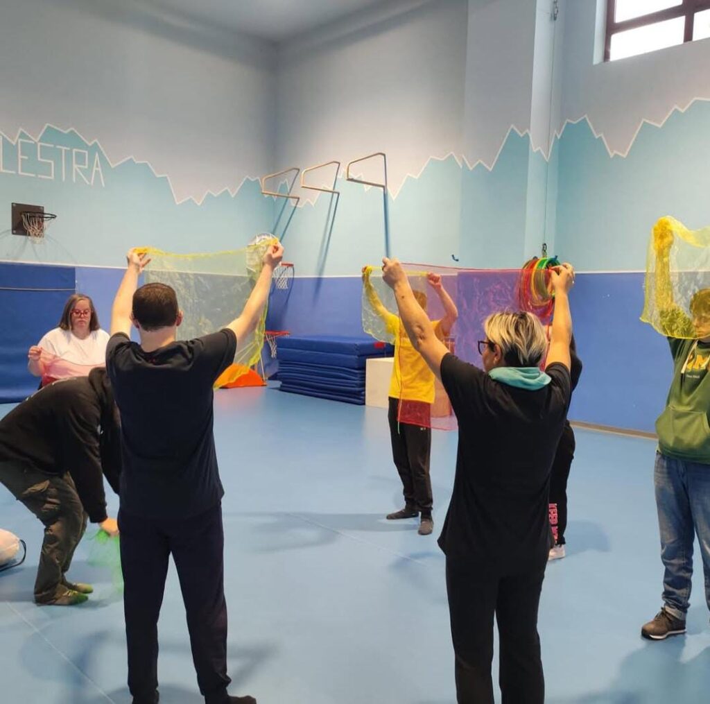 Il gruppo, formato da ragazzi e adulti dell’AGBD – Associazione Genitori Bambini Down di Arona, trasforma la palestra in un luogo di libertà e scoperta.